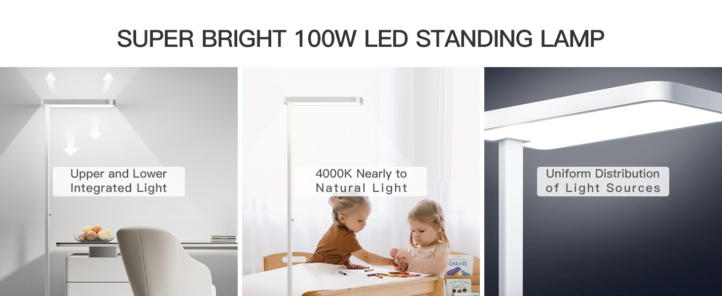 ·Super bright floor lamp: The luminous flux is up to 9000LM (upper 6000, lower 3000LM), one lamp can illuminate the whole house