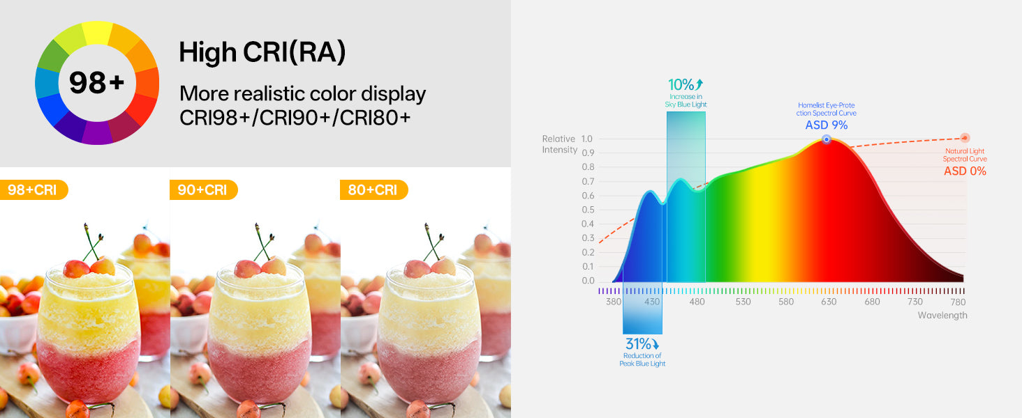 2.High-CRI 98 True Color:High CRI 98 brings out natural skin tones and home décor colors—premium modern ceiling lighting fixtures for cozy, vibrant spaces.