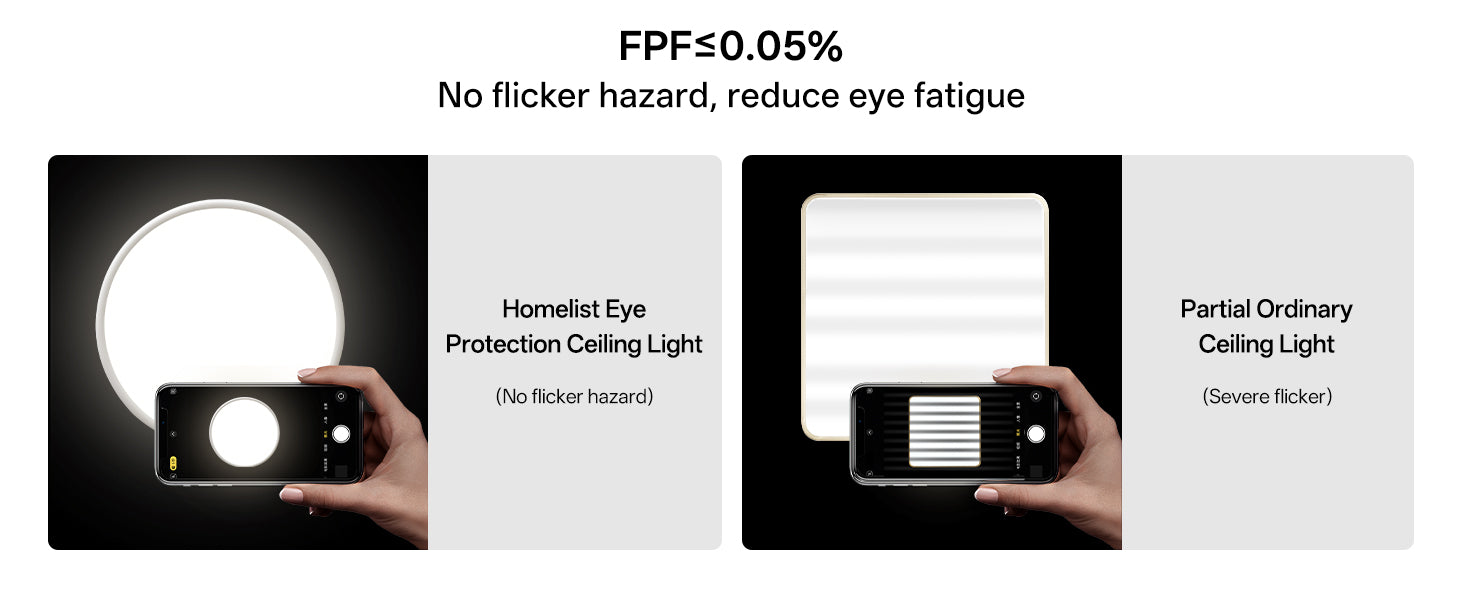 1.Eye-Care for Bedroom & Living Room light:Eye-care LED ceiling light for bedroom and living room—RG0 (no blue light hazard), flicker-free, and glare-free (UGR<19) to reduce eye strain.