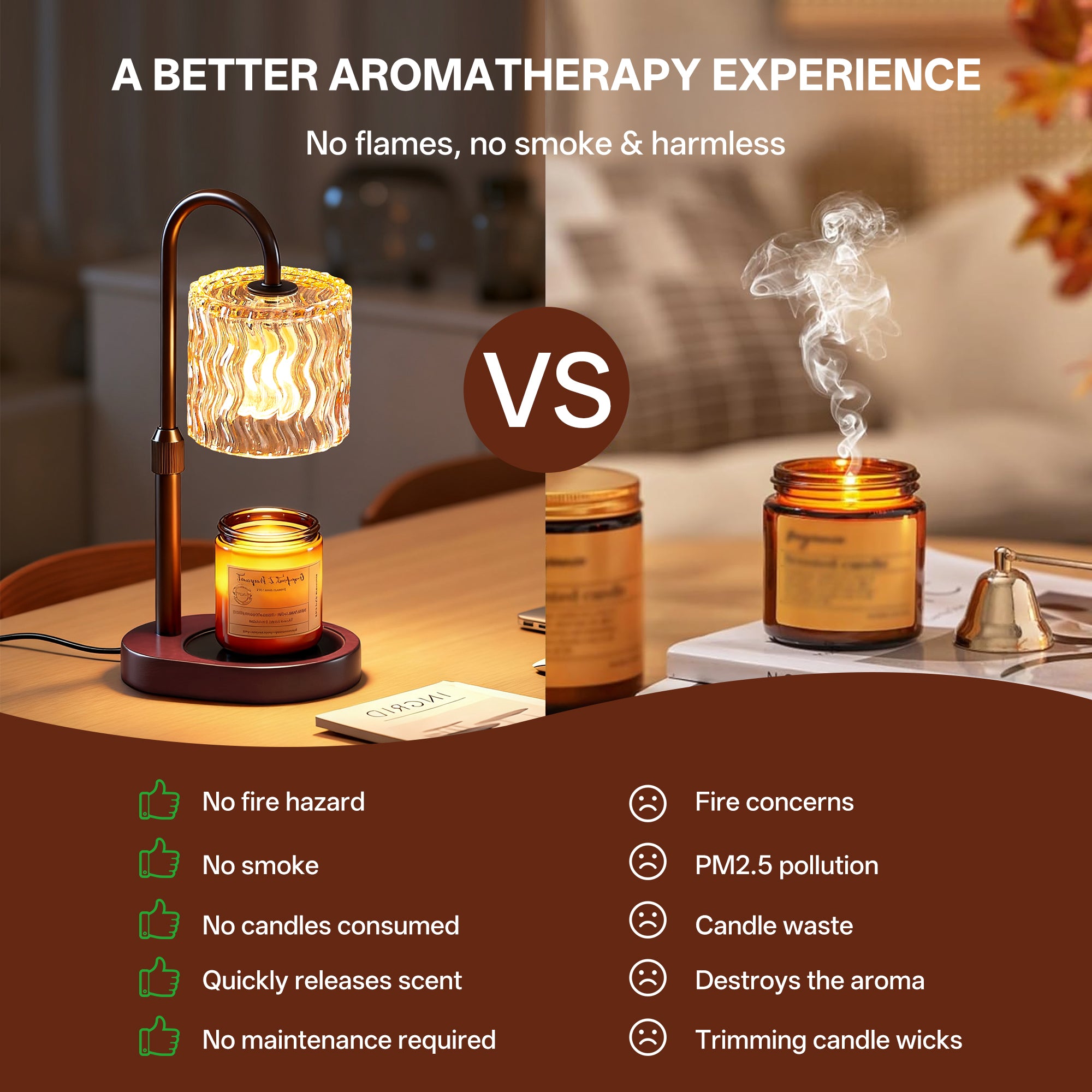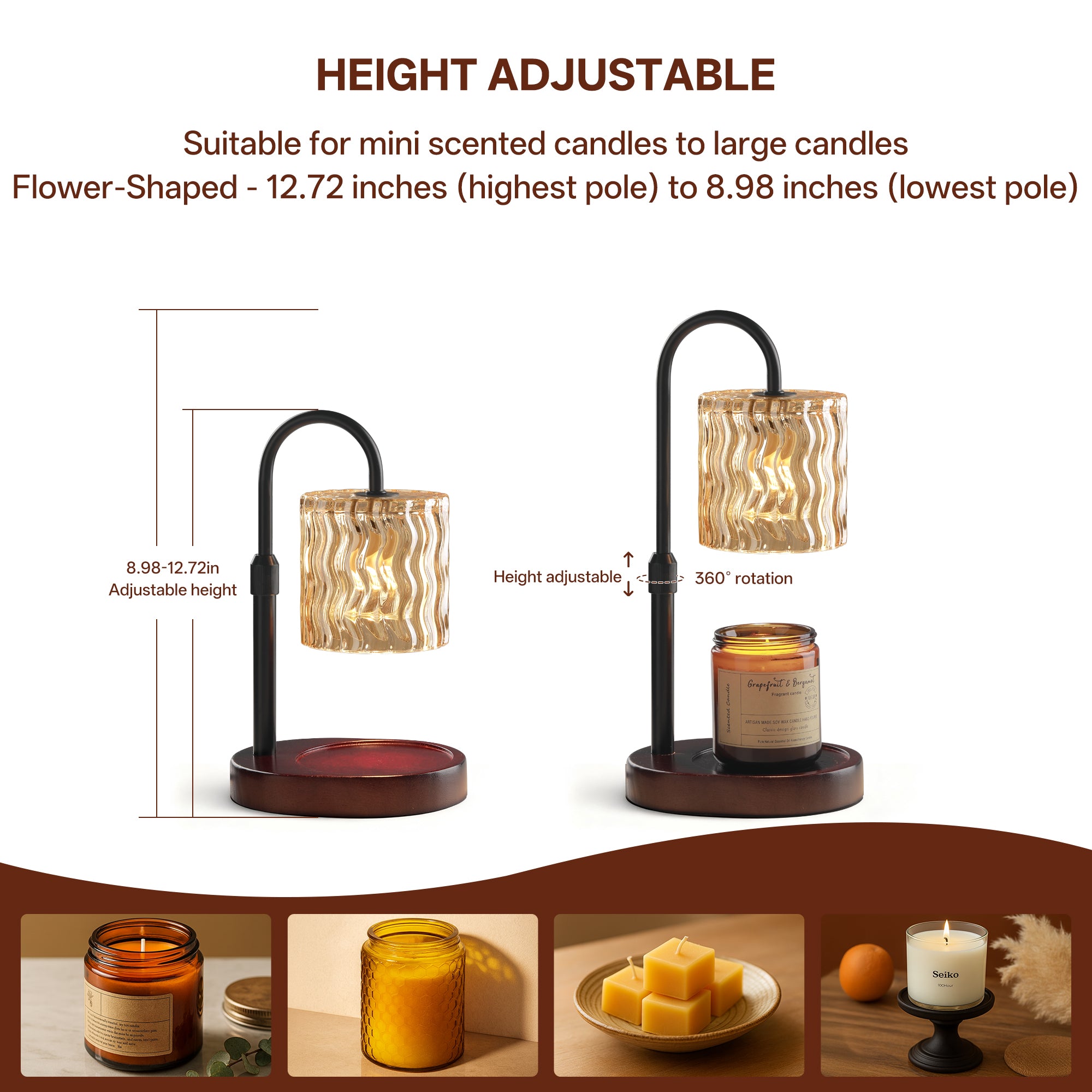 - 【Universal Fit & Custom Melting】With height-adjustable design, this candle lamp is suitable for any candle size – Effortlessly melt all jar candles, wax melts! Simply raise or lower the warmer lamp pole to perfectly fit your favorite scents. Releases full fragrance in minutes without wasted wax or tunneling. Finally—a frustration-free solution for candle lovers