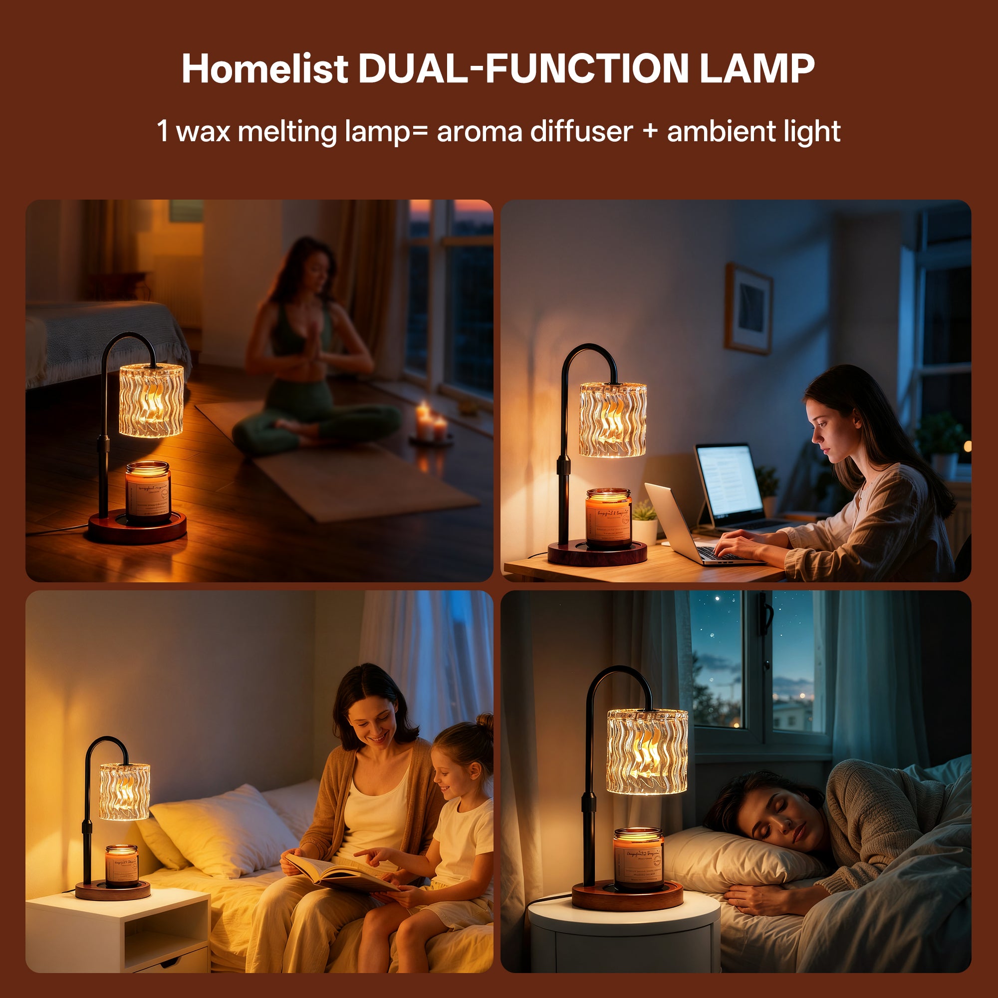 - 【Compact Design】Fall in love with Homelist enchanting vintage-inspired Candle Warmer Lamp! Designed to mimic the glow of traditional candles, its elegant metal finish and warm light create instant cozy home decor magic. Elegant addition to any home or office setting perfect for illuminating your bedside table