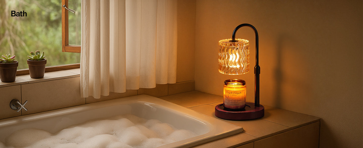 A candle warmer uses gentle heat from a halogen bulb to melt the candle from the top down—no open flame required. It releases fragrance evenly and safely while preserving the candle’s life.